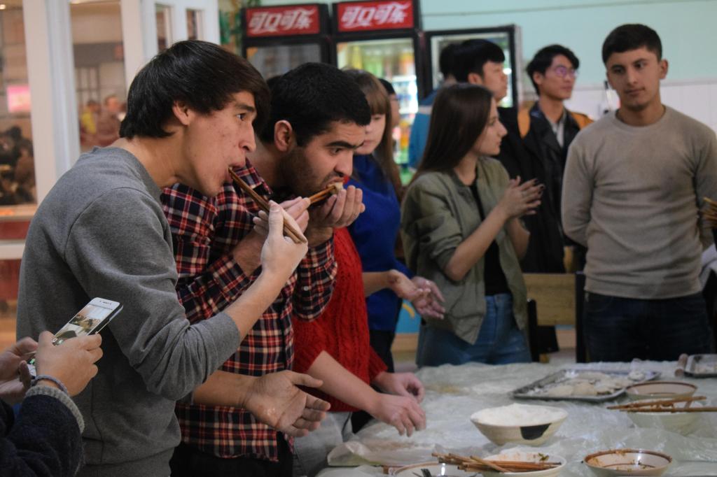 当一盘盘热腾腾的饺子端上来时,大家品尝着自己的劳动成果,一股股暖流注入心间。“好吃,真好吃!”塔吉克斯坦留学生李小龙吃着自己包的饺子,开心地竖起了大拇指,十分满足。整个活动像家庭聚会般轻松和谐,美味的饺子令人回味无穷。