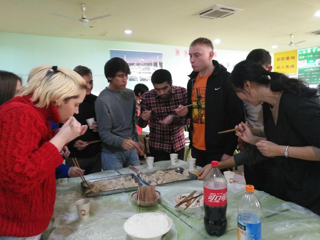 在冬至来临之际,为让留学生们进一步体验中国传统文化,丰富课余生活,促进国际文化交流,十大电子官网于2017年12月22日中午11:30-13:30在南苑三楼清真餐厅举行了澳门十大电子正规游戏网站庆冬至包饺子活动。此次活动由汉语系老师彭琰老师组织,汉语系的朱洁老师、孙西瑾老师、郭浩杰、陈维强同学,英语系的朱莎莎,张晓琳同学及9名留学生共同参与其中。