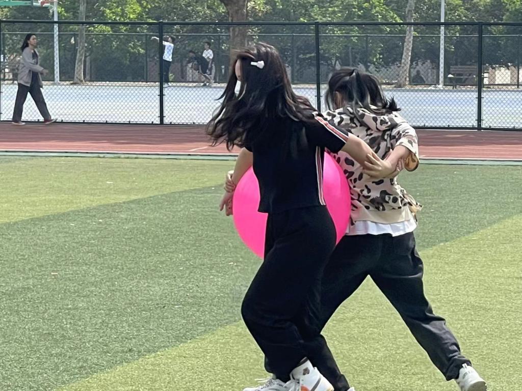 “双人运球”由学生们两两组队,自由参加。参赛者背对背相拥,站在同一起跑线上,将球运送至终点花费时间最短者获胜。此项活动可以增加学生之间的默契度,同时也体现了竞技精神。