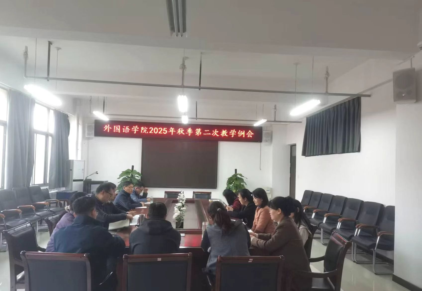 会上,各系部(中心)主任聚焦重点教学工作展开全面汇报。内容涵盖大学英语四六级辅导、招生工作、微专业建设、学科竞赛组织、ITEST 测试推进、学生考研就业服务及外语角活动开展等方面,详细阐述阶段进展与实际成效,并针对当前工作中的难点问题深入研讨,进一步凝聚共识、明确解决方案与推进路径。